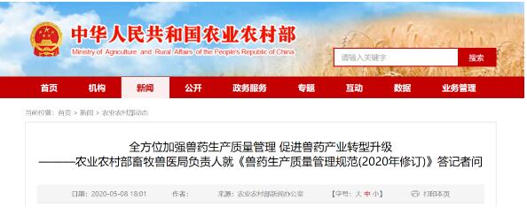 近期,農業農村部發布《獸藥生產質量管理規范(2020年修訂)》(以下簡稱“新版獸藥GMP”)。記者就相關問題采訪了農業農村部畜牧獸醫局負責人。