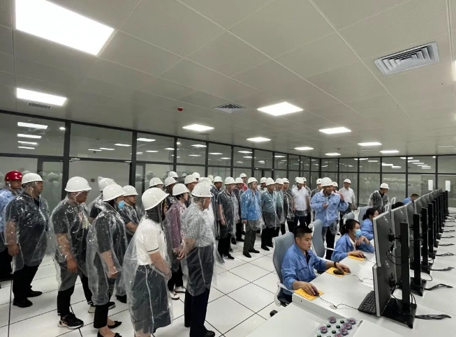考察團一行主要參觀了華辰生物化學有限公司廠區主控室、中間體車間、內酯合成車間、干燥車間、精制車間潔凈區及質檢研發中心等,翟副總經理對廠區布局、功能構建、生產智能化等向考察團進行了詳細介紹。