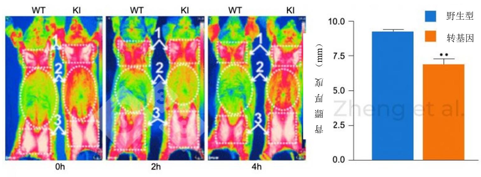 轉基因豬的一個例子是那些被插入UPC1基因的豬,這種基因在這個物種中并不天然存在。這種基因使它們能夠更好地調節體溫,從而使它們更好地適應低溫。因此,豬積累較少的皮下脂肪來維持體溫,這增加了瘦肉組織的百分比(圖3)。