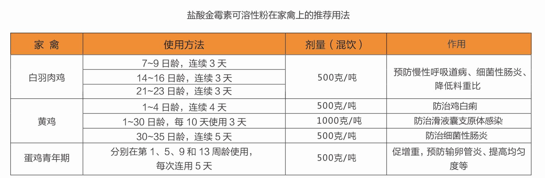 以本品計。雞,混飲:每噸飲水添加本品500-1000克,連用5-7天。